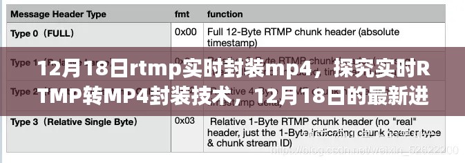 随着多媒体技术的飞速发展,流媒体技术已成为当今互联网领域不可或缺的一部分,特别是在疫情期间,线上直播、视频分享等需求的激增,使得实时流媒体处理技术愈发受到关注,RTMP转MP4的实时封装技术作为流媒体处理中的关键环节,其重要性不言而喻,本文将聚焦于12月18日的最新技术进展,从不同角度探讨该技术的现状,并阐述个人立场及理由。