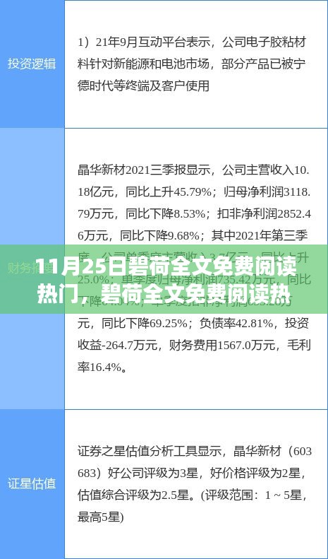 11月25日,让我们共同见证这个阅读盛宴,无论是热爱文学的年轻人,还是热爱阅读的老年人,都可以在这一天免费畅享《碧荷》的魅力,让我们一起走进这部小说的世界,感受其中的情感与智慧。