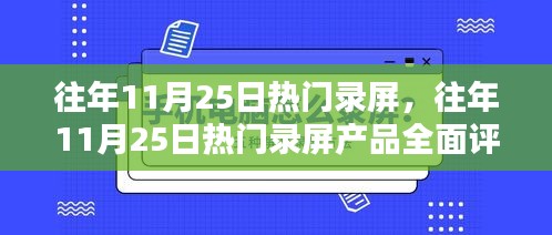 随着数字化时代的来临,录屏软件逐渐成为大众工作、学习和娱乐中不可或缺的工具,在往年11月25日,市场上涌现出多款热门录屏产品,本文将对其中一款典型录屏软件进行详细评测与介绍,帮助用户了解其特性、使用体验、与竞品对比以及目标用户群体。