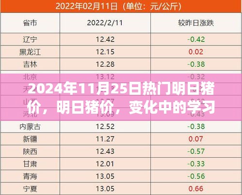 随着时代的变迁,我们每天都在面对各种挑战和机遇,在充满变化的时代里,我们不仅要关注那些热门话题,如即将到来的2024年11月25日的猪价走势,还要学会从变化中学习,不断提升自我,实现自我价值的飞跃,让我们一起探讨如何通过学习的力量,把握时代的脉搏,实现自信与成就感。