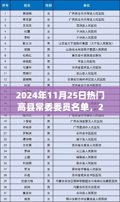随着时光的推移,我们迎来了2024年,这一年对于高县的发展具有重要意义,而每年的换届选举,更是决定县域发展走向的关键时刻,本文将聚焦于“2024年11月25日热门高县常委委员名单”,从不同角度深入分析这份名单所蕴含的意义和影响,并阐述某某观点。