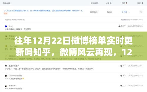 在数字化信息时代,微博作为社交媒体领域的佼佼者,一直扮演着传播资讯、引领舆论的重要角色,每年的微博榜单,更是成为公众关注的焦点,其中尤以特殊日期如往年12月22日的微博榜单最为引人注目,这一天的微博实时更新,不仅反映了当时的社会热点和民众情绪,更在某种程度上影响了公众的认知和决策,本文将带您回顾往年这一天微博榜单背后的故事,探寻其重要事件、影响以及在特定领域或时代中的地位。