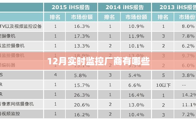随着信息技术的飞速发展,实时监控技术在各行各业得到了广泛应用,进入12月,许多企业纷纷推出自己的实时监控产品或服务,以满足市场不断增长的需求,本文将介绍一些在12月市场上活跃的实时监控厂商,它们凭借先进的技术和优质的服务赢得了客户的信赖。