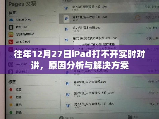 随着科技的飞速发展,iPad已成为我们日常生活中不可或缺的一部分,其中的实时对讲功能,更是让人们在进行远程交流时,体验到了更加真实、实时的沟通感受,有时候我们可能会遇到一些问题,比如往年12月27日那天,iPad的实时对讲功能无法正常使用,本文将针对这一问题进行原因分析,并为大家提供相应的解决方案。