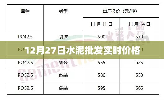 随着冬季的到来,建筑行业依然火热,水泥作为重要的基础建材,其价格动态备受关注,本文将详细介绍12月27日水泥批发的实时价格情况,包括市场分析、价格走势、影响因素以及未来展望,为行业内外人士提供有价值的参考信息。