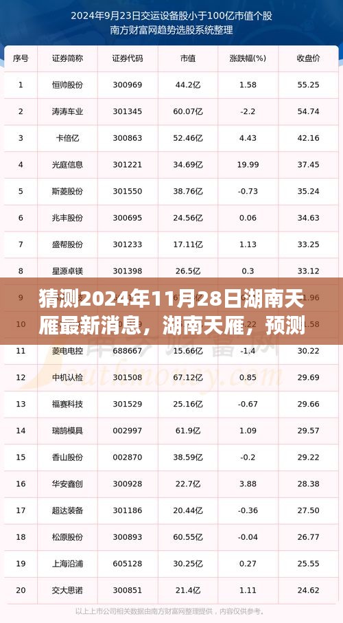 基于当前形势和趋势分析,我们可以对2024年11月28日的湖南天雁进行以下预测: