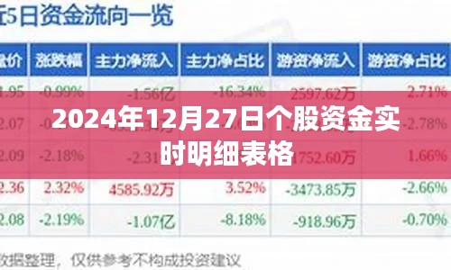 随着金融市场的日益繁荣,个股资金的流动情况对于投资者来说至关重要,了解个股资金的实时明细,有助于投资者把握市场动态,做出明智的投资决策,本文将为您呈现2024年12月27日个股资金的实时明细表格,以便您更好地了解当日市场资金流向。