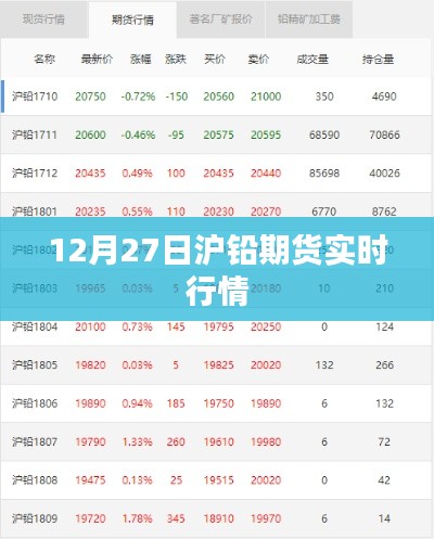 随着全球经济一体化的深入发展,期货市场作为金融市场的重要组成部分,其价格波动直接影响着众多行业的成本和利润,本文将对XXXX年12月27日的沪铅期货实时行情进行解读,分析铅期货价格走势及其背后的原因。