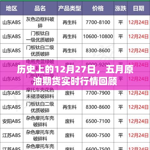 在金融市场波澜壮阔的历程中,每一个日期都可能留下深刻的历史印记,本文将重点回顾历史上的12月27日,特别是当天五月原油期货的实时行情,通过梳理这一天的市场变化,我们将揭示原油期货市场的波动、影响因素及对未来市场的启示。