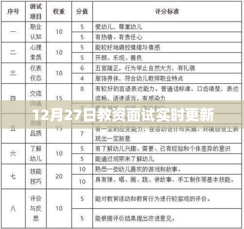 随着教育行业的不断发展,教师资格考试越来越受到重视,作为想要从事教育工作的人们,参加教资面试是必经之路,本文将为大家带来12月27日教资面试的实时更新,帮助大家更好地了解面试的最新动态和趋势。