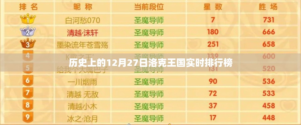 每年的十二月,都是洛克王国热闹非凡的季节,而到了每年的十二月二十七日,这个王国的每一个角落都会涌现出无数的精彩瞬间,成为历史长河中的一部分,我们就来一起回顾一下历史上的这一天,洛克王国的实时排行榜。