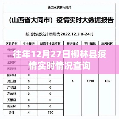 随着全球新冠疫情的不断演变,我国各地疫情防控形势日益受到关注,柳林县作为其中一个重要的地区,其疫情发展更是备受瞩目,本文将围绕往年12月27日柳林县疫情实时情况展开查询,为读者提供详尽的疫情信息和防控措施。