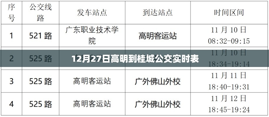 随着城市的发展和交通网络的不断完善,公共交通在人们的日常生活中扮演着越来越重要的角色,对于需要经常往返高明和桂城两地的人们来说,掌握最新的公交实时信息显得尤为重要,本文将为大家提供关于《12月27日高明到桂城公交实时表》的相关信息,以便大家合理安排出行计划。