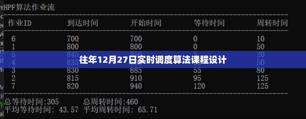 随着信息技术的飞速发展,实时调度算法在各个领域的应用越来越广泛,本文旨在介绍往年12月27日实时调度算法课程设计的全过程,包括设计目标、设计思路、具体实现、性能评估及优化等方面,以期为读者提供有益的参考。