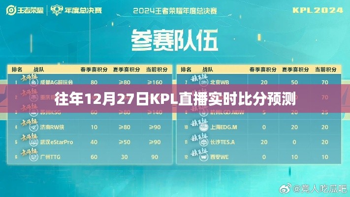 随着电子竞技的飞速发展,王者荣耀职业联赛(KPL)日益受到广大游戏爱好者的关注,每年的KPL比赛都充满激情与竞技,而其中的某些日期,如12月27日,更是备受瞩目,本文将围绕往年12月27日KPL直播的实时比分进行预测,带您一探究竟。