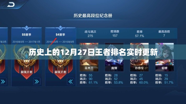 转载请注明来自工巨商城,本文标题:《历史上的王者排名实时更新,王者荣耀12月27日榜单更新》