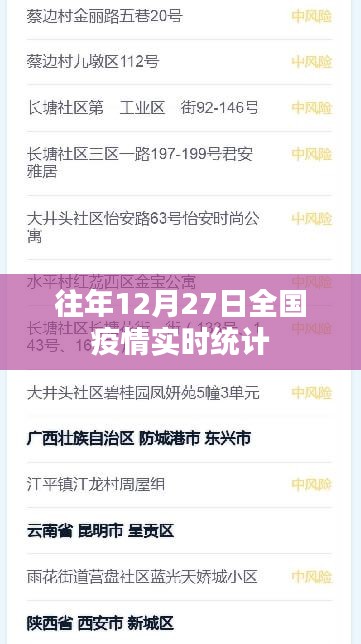 随着全球新冠疫情的持续演变,每年的12月27日都成为了人们关注国内疫情防控的重要时刻,这一天,全国各地区的疫情数据都在不断刷新,实时掌握疫情动态对于防控工作至关重要,本文将围绕往年12月27日的全国疫情实时统计进行回顾,以期为人们提供有价值的参考信息。