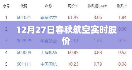 随着全球航空市场的不断发展,各大航空公司的股价成为投资者关注的焦点,春秋航空作为国内领先的低成本航空公司,其股价表现一直备受关注,本文将重点关注12月27日春秋航空的实时股价,并对其进行深入分析。