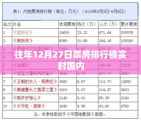随着国内电影市场的日益繁荣,每年的票房排行榜都备受关注,特别是在年末之际,各大影片纷纷上映,竞争异常激烈,本文将为您实时分析往年12月27日的国内票房排行榜,探讨背后的原因和影响。