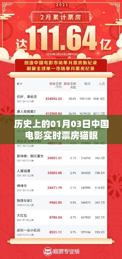 电影,作为一种群众性的艺术形式,其发展脉络与票房成绩息息相关,在中国电影市场上,每一年的票房数据都见证着行业的繁荣与变迁,本文将聚焦于历史上的某一特定日期——每年的1月3日,通过猫眼电影实时票房数据,探究中国电影市场的动态与趋势。