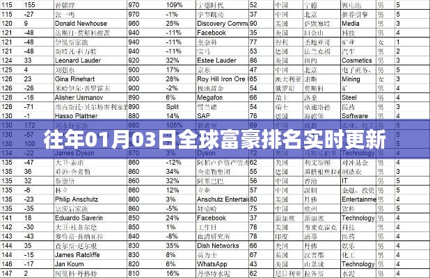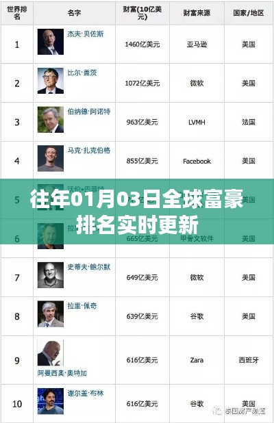 随着全球经济的不断变化和发展,富豪们的财富也在时刻波动,每年的1月3日,全球各大富豪的排名都会经历一次重要的更新,本文将为您详细介绍往年1月3日全球富豪排名的实时更新情况。