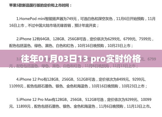 随着科技的不断发展,智能手机已成为我们日常生活中不可或缺的一部分,每年的新款手机发布都会引发消费者的极大关注,其中苹果公司的iPhone 13 Pro更是备受期待,本文将聚焦于往年特定日期——01月03日的iPhone 13 Pro实时价格,带您了解这一高端产品的价格动态。