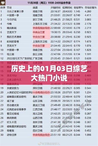 在文艺长河中,每一个日期都承载着丰富的历史与文化内涵,本文将聚焦于每年的1月3日,在这一天,综艺界涌现出众多大热门小说,这些小说不仅丰富了人们的文化生活,更在某种程度上改变了人们对综艺艺术的认知,让我们一起探寻历史上的那些令人瞩目的综艺大热门小说。
