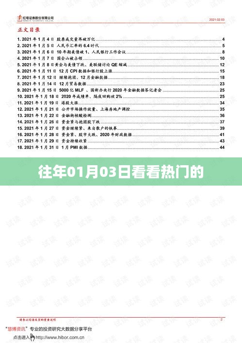 回顾往年一月三日的热门话题和事件,我们可以发现每年的这个时候都有许多引人注目的事物,从节日氛围与热门活动,到科技领域的进展、娱乐圈的热点事件以及社会热点话题,都反映了时代的变迁和社会的进步,展望未来,我们有理由相信,新的一年会带来更多的惊喜和突破,让我们共同期待新的一年,迎接更多的美好时刻,在这个过程中,我们也应该保持关注,了解最新的动态和趋势,以便更好地适应社会的发展和变化。