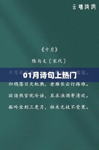 《01月诗句上热门》不仅展现了一月诗句的魅力,也反映了人们对美好事物的追求和对情感的关注,让我们在新的一年里,继续品味这些美好的诗句,感受它们所带来的美好和感动,我们也期待更多的优秀诗句在未来的日子里受到关注,为我们的生活增添更多的色彩和乐趣,新的一年,让我们与诗同行,感受生活的美好。