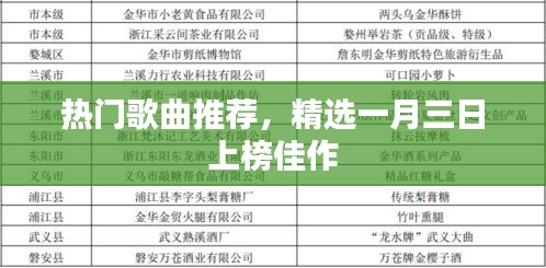 随着时代的变迁,音乐在人们生活中的地位愈发重要,每一首歌曲背后都蕴含着丰富的情感和故事,它们能够抚慰人心,激发热情,陪伴我们度过每一个难忘的时刻,本文将为您推荐一月三日上榜的热门歌曲,让您感受音乐的魅力。