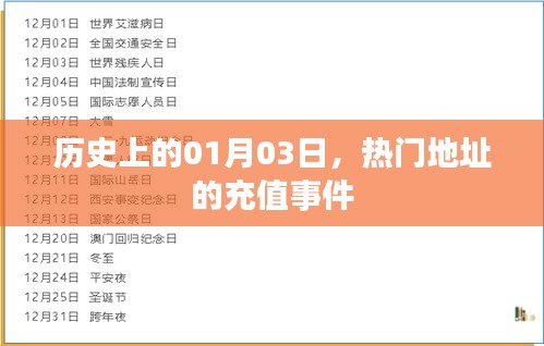 时光荏苒,岁月如梭,在历史的长河中,每一个日子都承载着无数的故事和变迁,本文将聚焦于每年的1月3日,探寻在这一天发生的重大事件,特别是关于热门地址充值的内容,让我们一同回溯历史,了解这一天的不平凡之处。
