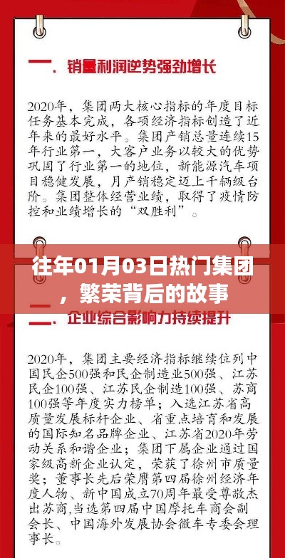 往年01月03日,热门集团以其强大的实力、多元化的业务、良好的企业文化以及积极的社会责任,成为了全球瞩目的焦点,热门集团的繁荣背后,是无数员工的辛勤付出和集团的明智决策,在新的一年里,热门集团将继续努力,为实现更加辉煌的未来而奋斗。
