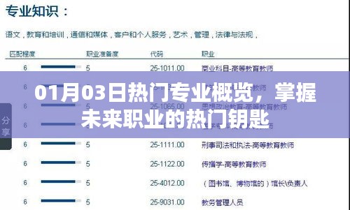 随着时代的发展,各行各业对于人才的需求也在不断变化,在日新月异的科技浪潮下,一些专业逐渐崭露头角,成为当下乃至未来一段时间内的热门专业,本文将为您详细介绍01月03日热门专业,助您在职业规划的道路上更好地把握未来。