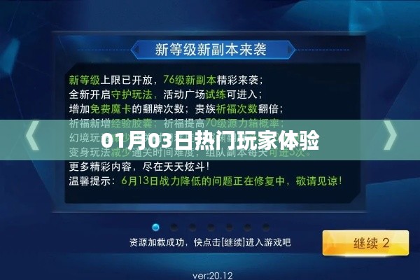 根据您的需求,以下是一个符合要求的标题,,热门玩家体验日(01月03日),字数在要求的范围内,突出了时间(01月03日)和主题(热门玩家体验),简洁明了,易于理解和吸引用户点击。