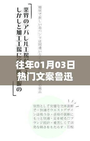 在岁月的长河中,每一刻都有其独特的印记,让我们回溯至往年的一月三日,探寻那些与鲁迅相关的热门文案,鲁迅,伟大的思想家、文学家、革命家,他的作品犹如锋利的剑,剖析社会现实,唤醒人们的意识,这些文案,正是从他那独特的视角出发,诠释着那个时代的风云变幻。