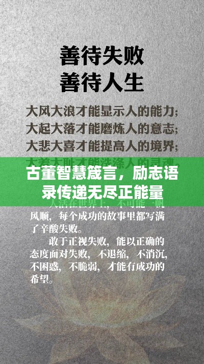 这些古董中的励志语录,是传统文化的瑰宝,通过分享这些语录,我们可以弘扬传统文化,让更多的人感受到古人的智慧,这些语录也为我们提供了宝贵的启示,引导我们走向成功。