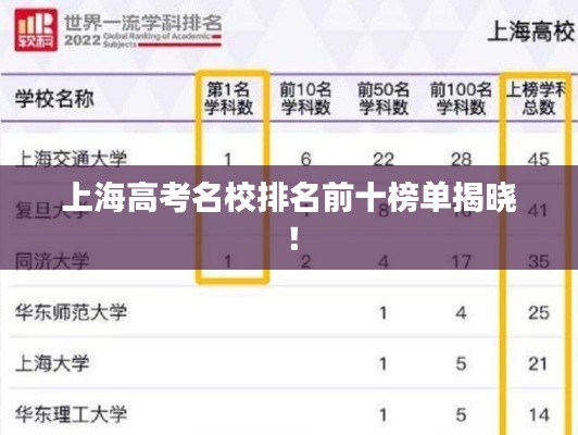 高考,对于中国的学生和家长来说,是人生的重要里程碑之一,而在上海这座繁华的国际大都市,教育资源的丰富和优质更是让人瞩目,我们将一起探讨上海高考排名前十名的名校,这些学校不仅是学术的殿堂,更是无数求学者梦寐以求的地方。