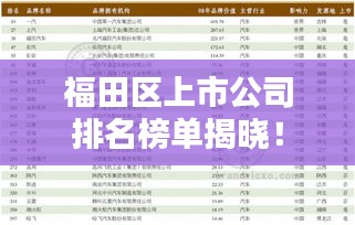 在福田区的上市公司中,有一些公司凭借其强大的实力和业绩,在排名榜上名列前茅,这些公司在金融、房地产、科技等领域具有较高的市场份额,为福田区的经济发展做出了突出贡献。