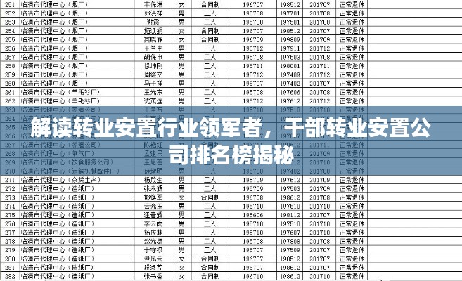 随着我国军队建设的不断推进,转业干部安置问题日益受到社会各界的关注,转业干部安置公司作为连接政府、军队与社会的桥梁,发挥着举足轻重的作用,本文将为您解读当前市场上的干部转业安置公司排名榜,介绍这些在转业安置行业的领军者。
