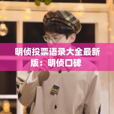1. “真相只有一个,但人心却可以千变万化。” —— 这句话道出了《明侦》投票环节的精髓,每一次的投票都考验着每位侦探的心智和判断。 2. “我相信我的直觉,直觉告诉我他(她)就是凶手!” —— 在紧张的氛围中,侦探们往往凭借直觉进行投票,有时直觉成为了关键。 3. “证据是死的,人是活的。有时候,我们需要用心去感受,去体会。” —— 这句话提醒我们,在投票时不仅要看证据,还要结合情况分析。 4. “投票不是一个人的游戏,而是团队的智慧。” —— 团队合作在投票环节尤为重要,每个人的投票都是对团队智慧的一次考验。