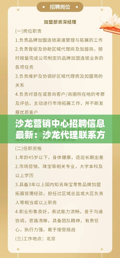 以下是沙龙营销中心最新招聘的岗位及具体要求: