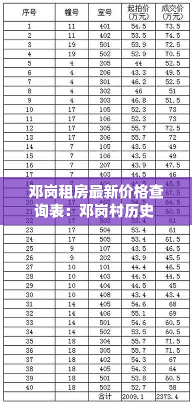 转载请注明来自工巨商城,本文标题:《邓岗租房最新价格查询表:邓岗村历史 》