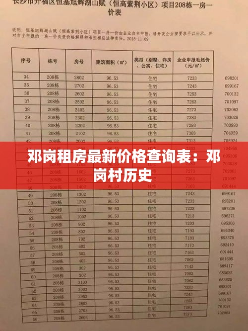 以下是根据2023年市场调查整理的邓岗租房最新价格查询表,包括不同区域、不同户型、不同装修风格的租金价格,供您参考。