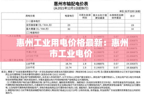 惠州,作为广东省的一个重要工业城市,近年来在工业用电价格方面进行了多次调整。以下是对惠州工业用电价格最新情况的详细介绍。