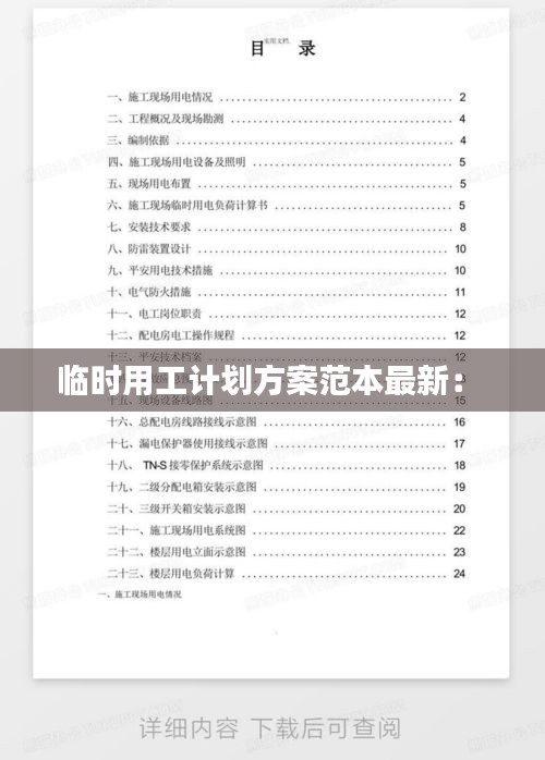 随着我国经济的快速发展,企业对人力资源的需求日益多样化。临时用工作为一种灵活的人力资源配置方式,越来越受到企业的青睐。为了更好地满足企业对临时用工的需求,本文将为您提供一份最新的临时用工计划方案范本,以帮助企业合理规划和管理临时用工。