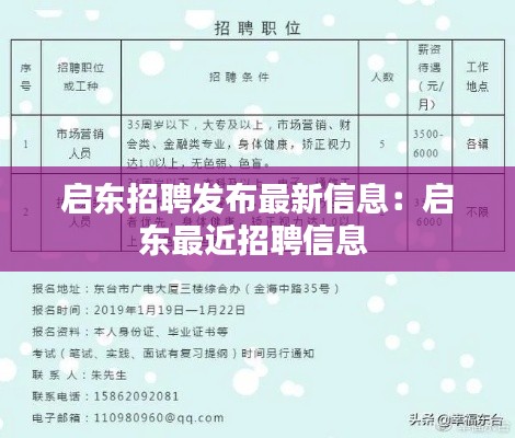 随着经济社会的不断发展,人力资源市场的需求也在不断变化。为了满足企业和求职者的需求,启东市人力资源与社会保障局近日发布了最新的招聘信息。以下是本次招聘的详细情况,供广大求职者参考。