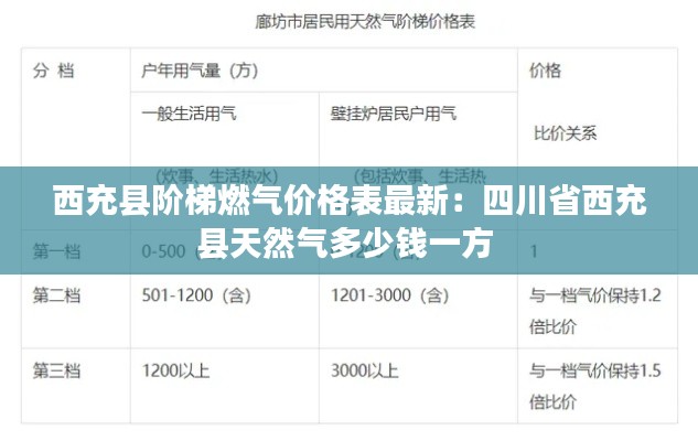 以下是西充县最新的阶梯燃气价格表: