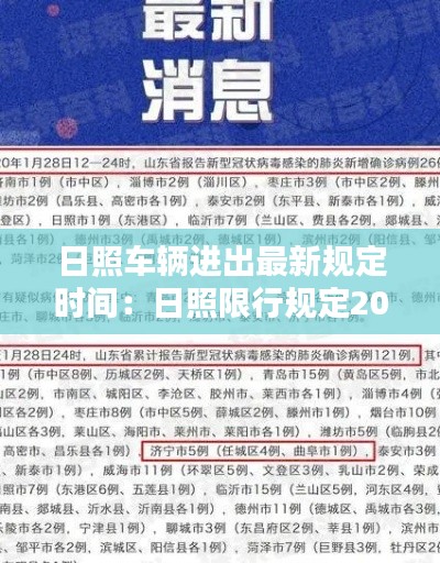日照市车辆进出最新规定时间的实施,对于缓解交通压力、提高道路通行效率具有重要意义。希望广大市民和游客能够严格遵守规定,共同维护城市交通秩序,共创和谐美好的出行环境。