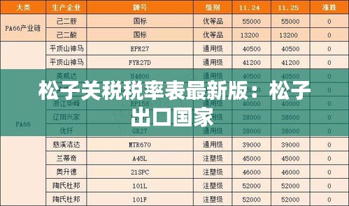 松子作为一种营养价值丰富的坚果,在全球范围内都受到消费者的喜爱。随着国际贸易的发展,松子的进出口贸易也日益频繁。关税作为国际贸易中的重要组成部分,对松子的进出口贸易有着直接的影响。本文将为您介绍最新的松子关税税率表,帮助您了解当前的国际市场情况。