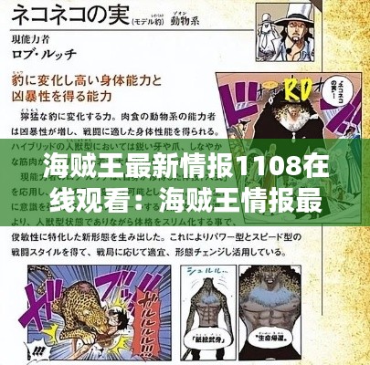 备受粉丝期待的海贼王最新一集,即1108集,已经正式公布。这一集将带来怎样的精彩内容?如何在第一时间在线观看?以下是关于海贼王最新情报1108的详细内容。